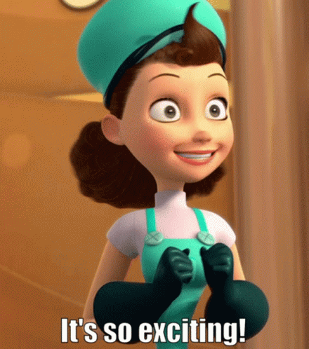 Aunt Billie from Meet the Robinsons exclaims 'It's so exciting!' with wide eyes.
