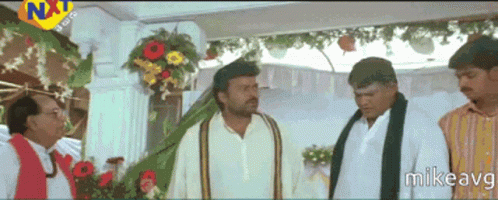 Chiranjeevi, as Megastar Indra, is dramatically slapped by another man during a ceremony, leading to shocked reactions.