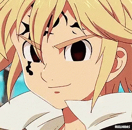 Meliodas from Seven Deadly Sins displays a wrathful, evil smile with his demon mark visible.