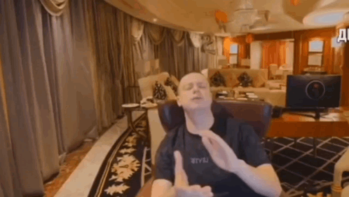 Mellstroy sits in a luxurious room, making a funny and expressive face for the camera.