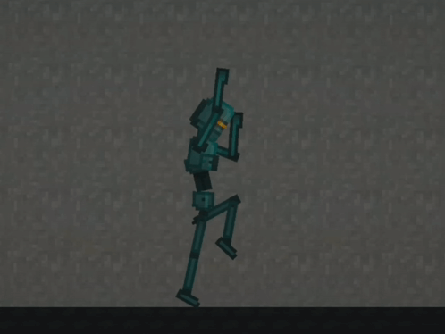 A pixelated robot character from Melon Playground performs a dance, moving its limbs rhythmically.