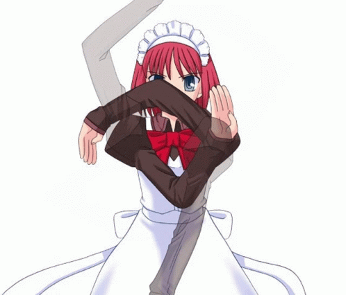 Hisui from Melty Blood in her maid outfit, striking a unique pose with her hands.