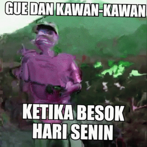 Indonesian meme featuring a character with text 'Me and friends when tomorrow is Monday,' capturing the Monday dread.