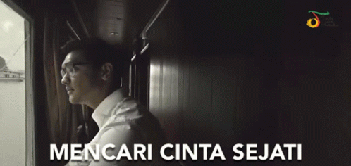 A man, possibly Afgan, looks out a window with the text 'Mencari Cinta Sejati' (Searching for True Love) displayed.