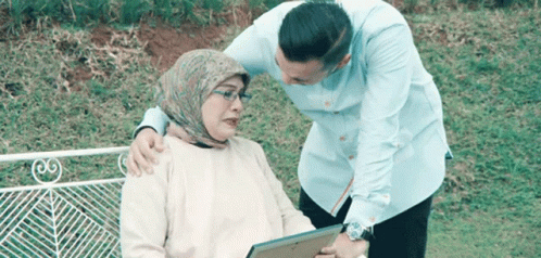 Naura receives a forehead kiss and hug from a man, appearing sad and emotional while holding a picture frame.