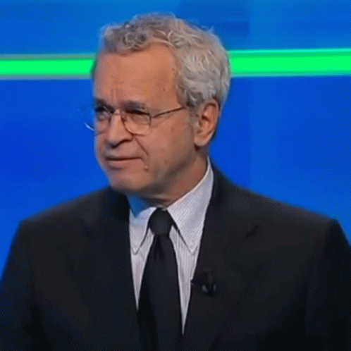 Enrico Mentana reacts with a smile and 'Che Bello' while speaking on screen.