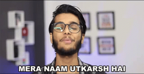 A man, Utkarsh, introduces himself by saying 'Mera Naam Utkarsh Hai' (My name is Utkarsh) with a smile.
