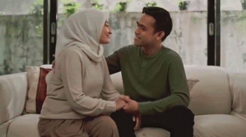 Fildan embraces a woman on a couch, holding hands and smiling warmly.