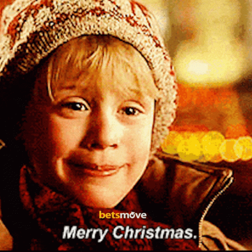 Kevin McCallister from Home Alone, in his iconic hat and scarf, wishes everyone a 'Merry Christmas'.