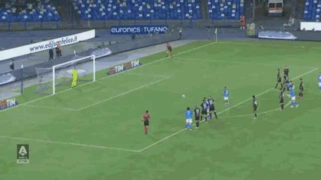 A sniper's scope targets Dries Mertens during a football match as he performs a simulation (diving).