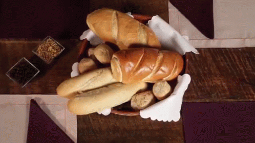 A delicious breakfast or brunch spread is set on a wooden table, featuring various breads, spreads, and ham.