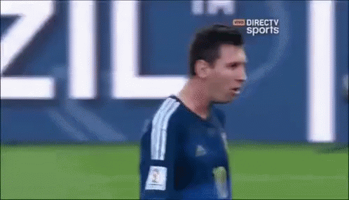 Lionel Messi looking distressed on the field, reacting with 'Que Nojo!' (How disgusting!).
