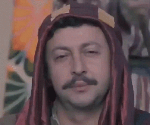 Metin Akpınar, the Turkish actor, wearing a traditional headscarf and mustache, looking directly at the camera.