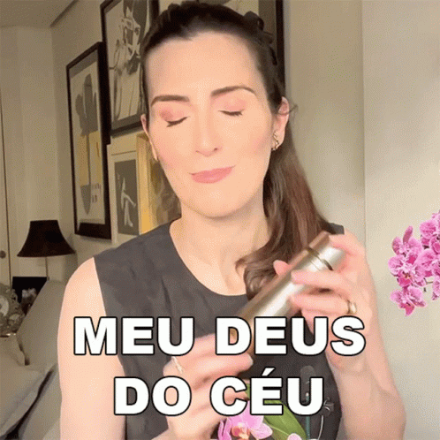 Cinthia Ferreira reacts with 'Meu Deus Do Céu!' while holding a product, expressing surprise and awe.