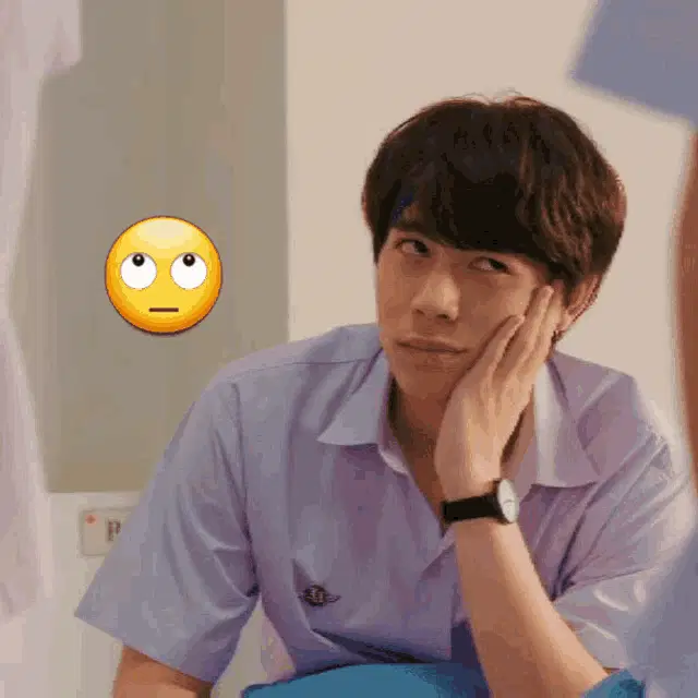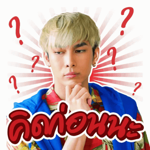 Mew Suppasit (Mss) looking confused and thoughtful, surrounded by red question marks.
