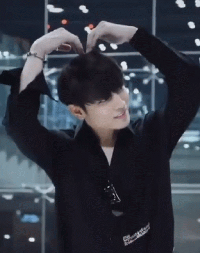 Mewgulf's Gulf makes an adorable heart gesture with his hands, smiling brightly for the camera.