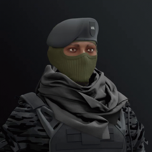 A 3D rendered MFA Meta Force Army soldier showcases various tactical looks, including sunglasses, beanie, and face mask.