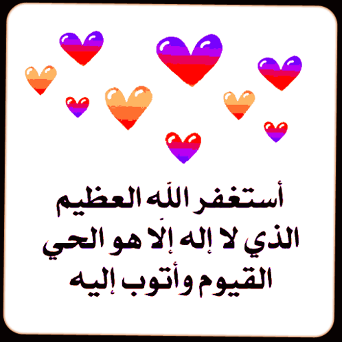 A graphic with the Arabic prayer 'Astaghfirullah' for forgiveness, adorned with colorful hearts.