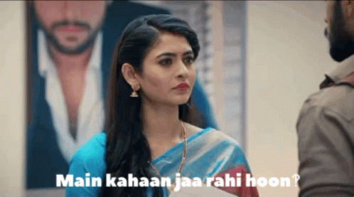 Mhrw Pallu in a blue saree asks 'Main kahaan jaa rahi hoon?' while talking to a man.
