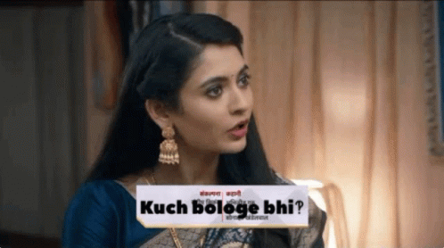 Mhrw Pallu, wearing a blue saree, asks "Kuch bologe bhi?" (Will you say something?) in this dramatic scene.