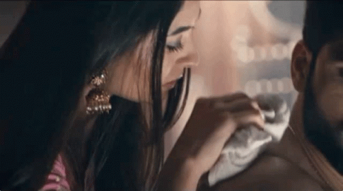 Mhrw Raghvi: A woman gently tends to a man's shoulder with a towel in a tender, intimate moment.
