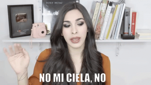 Victoria Volkova emphatically says 'No mi ciela, no' while gesturing, with books and awards in the background.