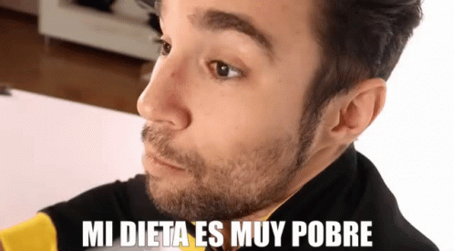 Man exclaims 'Mi dieta es muy pobre' about his poor diet and lack of money.