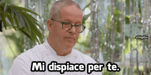 Chef Ernst Knam, from Bake Off Italia, says 'Mi dispiace per te' (I'm sorry for you).