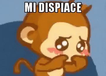 A cartoon monkey covers its mouth, expressing 'Mi Dispiace' (I'm sorry) with a sad expression.