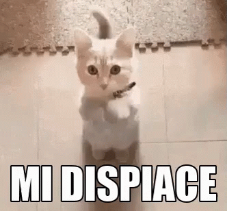A cute cat stands on its hind legs, making an apologetic gesture with its paws, with the text "I'M SORRY" overlaid.