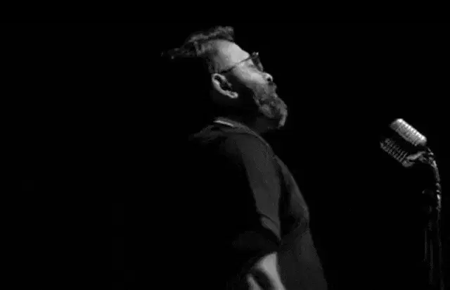Cristiano Malgioglio, wearing a red suit and sunglasses, declares his love for rhythm.