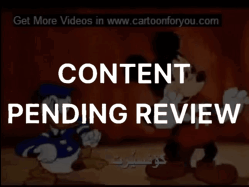 Mickey Mouse and Donald Duck cartoon with 'Content Pending Review' overlay, featuring Arabic text.