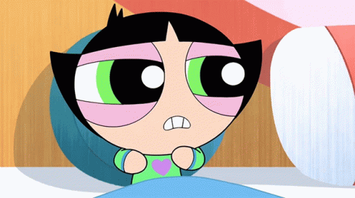Buttercup from The Powerpuff Girls looks scared and wide-eyed while lying in bed.