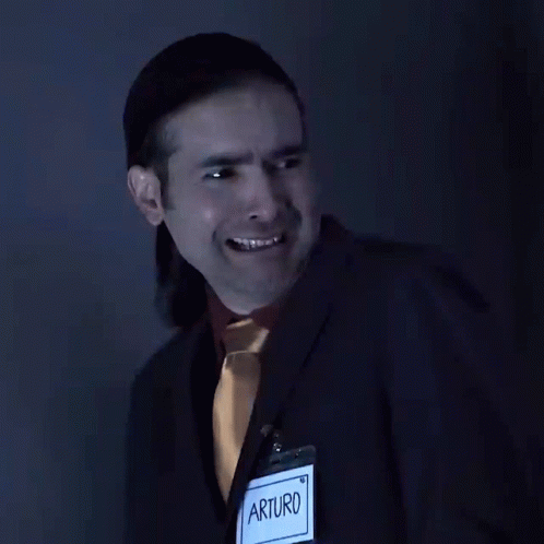 Arturo from Enchufe Tv shows a hilarious scared and disgusted reaction, looking over his shoulder.
