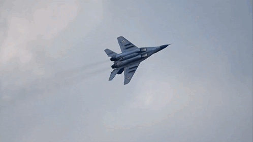 A Polish Air Force MiG-29 fighter jet performs maneuvers, leaving a smoke trail in the sky.