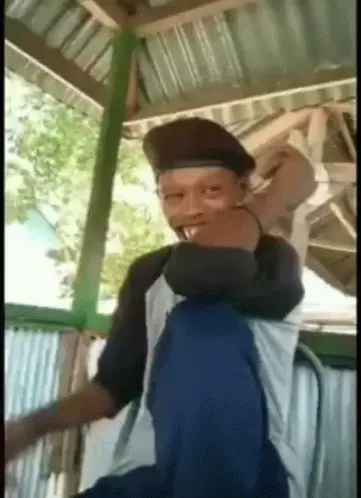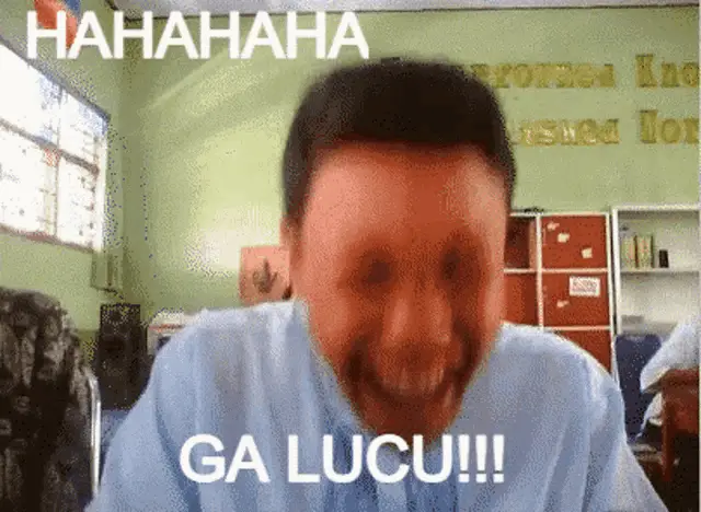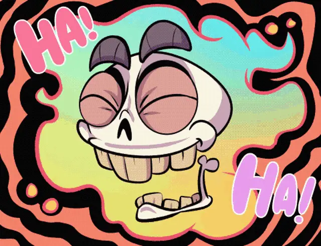 A man with a mustache, associated with Miggi, laughs heartily with his eyes closed against a pink background.