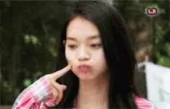 Miho, with long black hair, makes adorable funny faces for the camera.