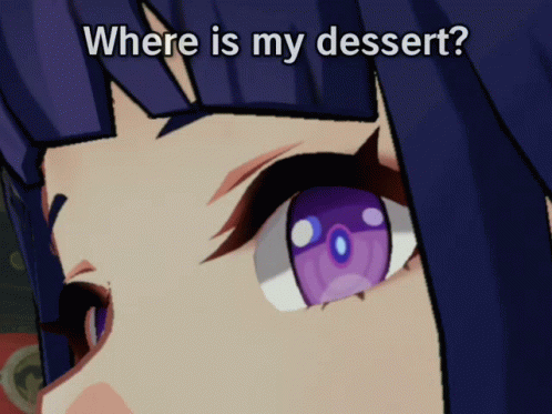 Raiden Shogun Baal Ei from Genshin Impact demands her dessert with a stern look.