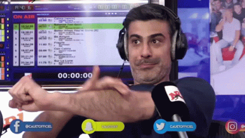 Miko and Cauet share a funny moment on NRJ radio, clapping and reacting with humor.