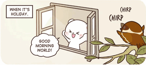 Milk Bear from Milk and Mocha joyfully greets the world from a window on a holiday morning.
