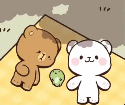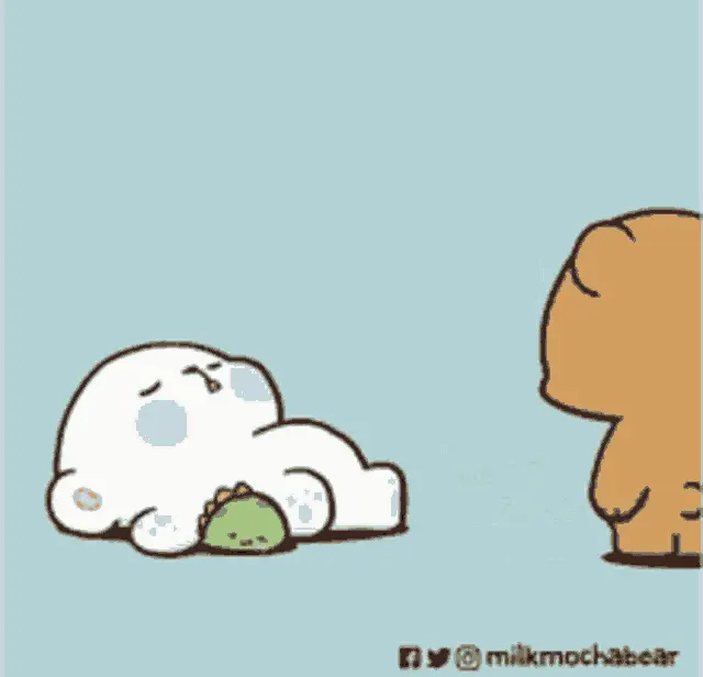Milkmocha's Milk bear searches the fridge, then finds and hugs Mocha, showing affection. For Alex.