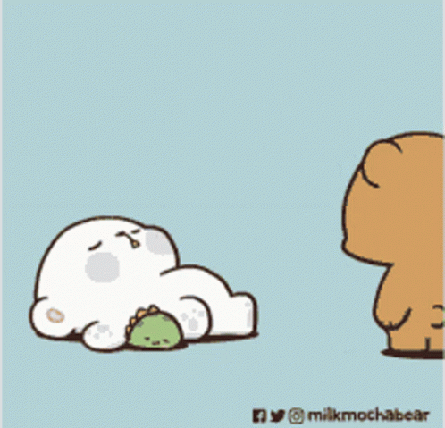 Milkmocha Bear is dragged by another bear for cuddles, then they snuggle up for a sweet sleep.