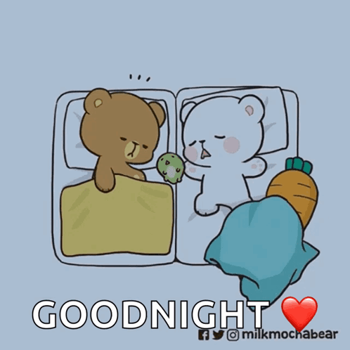 Milkmochabear and Milk Mocha cuddle up in bed for a sweet goodnight.