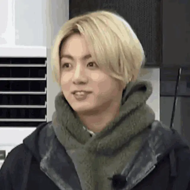 Jungkook from BTS, with blonde hair, closes his eyes, appearing to be deep in thought or appreciating something.