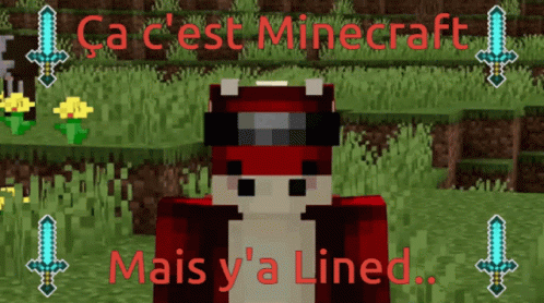 A Minecraft screenshot featuring a player skin and text "Ça c'est Minecraft Mais y'a Lined..", referencing the YouTuber Lined.