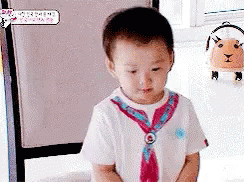 Minguk, the adorable child, sits looking bored but then shows a hint of amusement, captured in a sweet moment.