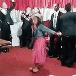 Mini Pastora, a small girl in a pink skirt, dances energetically in front of a group of adults.