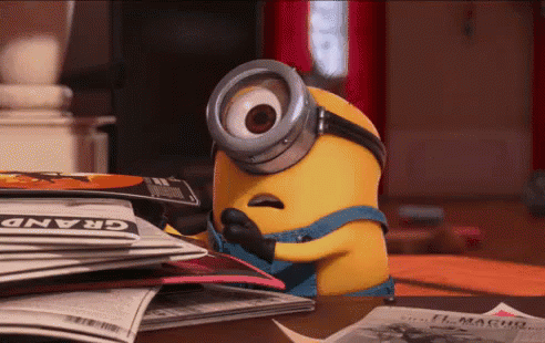 A Minion character looks at newspapers, then turns away with an indifferent expression as 'Me da igual' appears.