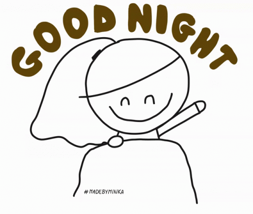 Animated drawing by Minka Madebyminka featuring a smiling character and 'Good Night' message.