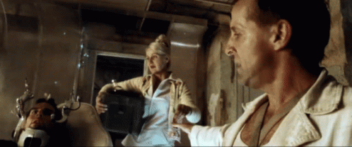 A scene from Minority Report featuring Tom Cruise, where a woman presents packaged eyeballs.